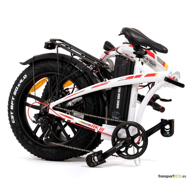 ¡El modelo You-Ride Dubai! Es un modelo de bicicleta electrica Urban fabricada con ruedas FAT que le hará tener una conducción cómoda y muy estable en la carretera. Además, es un modelo plegable que te permite llevarla fácilmente en el maletero del coche a otros lugares, como puede ser la playa o para irte de paseo a cualquier lugar.